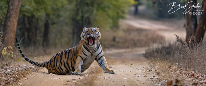 Bajrang has the biggest territory of any male tiger spread across the three tourism zones of the forest - Tala, Magdhi and Khitauli. It is estimated that the size of his home range is between 100 and 125 sq. km.