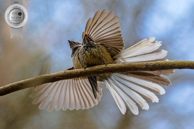 'When two become one' - A pair of mating New Zealand fantails. This image was taken at the precise moment the male began his dismount, opened his wings and was about to fly off. Look closely and you'll see that the open wings belong to the male while the fanned out tail belongs to the female.