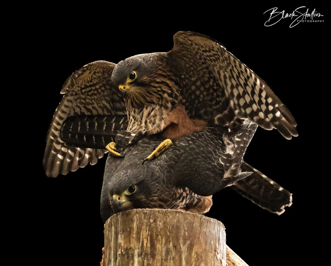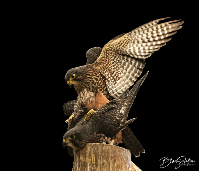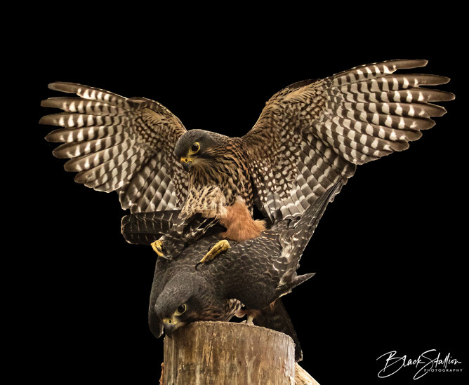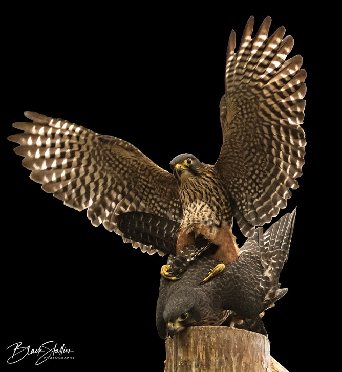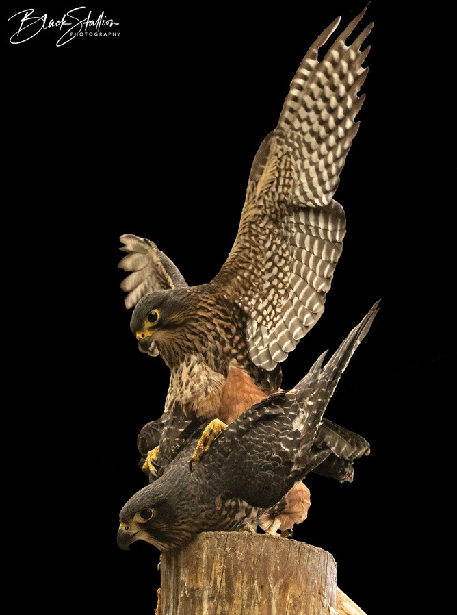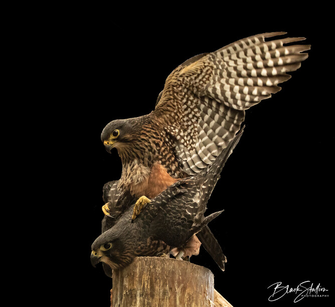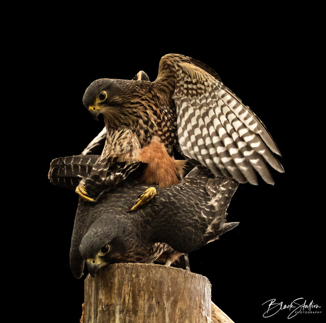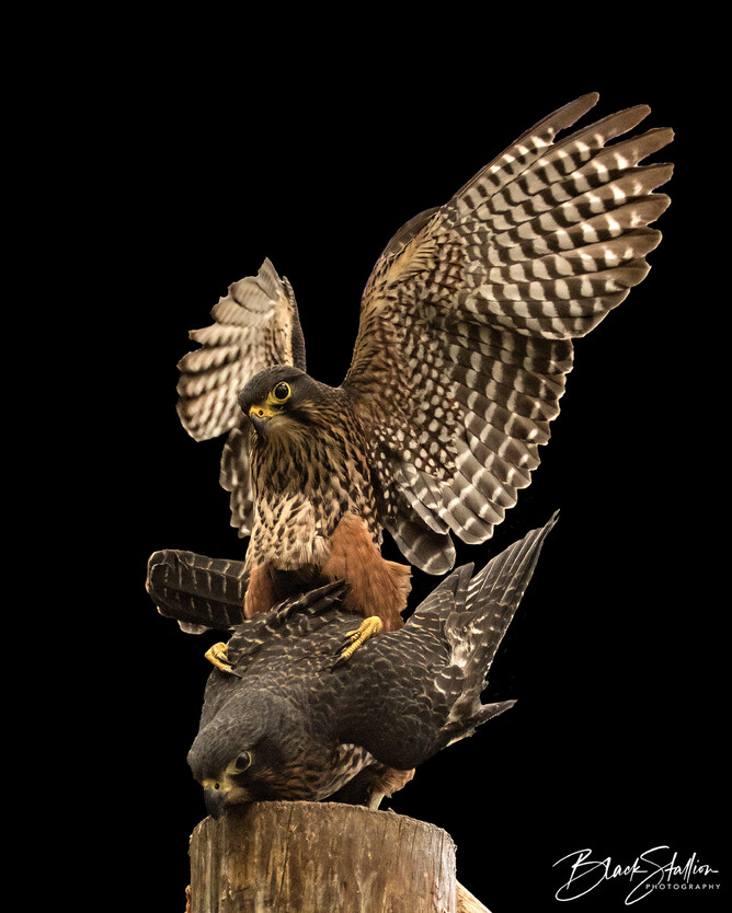 Back in 2015, I had the opportunity to witness and photograph a pair of Eastern New Zealand falcons (found in the South Island of New Zealand)(Kārearea) mating at Wingspan. This pair (Male – ‘Wink’ and Female – ‘Ali’) was one of Wingspan’s breeding pairs.