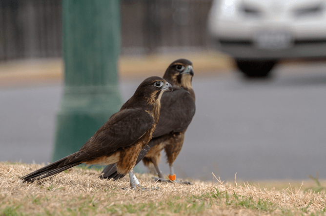 They were in the National Press and news of them spread internationally thanks to social media. Folk travelled to Rotorua, both nationally and internationally, specifically to see "the falcons at the Government Gardens". Right from the very beginning we all knew that Hatupatu would grow up to be a handsome dude and would be a bit of a Casanova. He immediately took a liking to Maureen and would always be seen not far from her and they were practically inseparable. Unfortunately this match would not last long as Maureen had to be caught up a few months later and euthanised as she received a debilitating and incurable injury to one of her legs as a result of coming in contact with a drone that was flown at the Government Gardens at the time.
