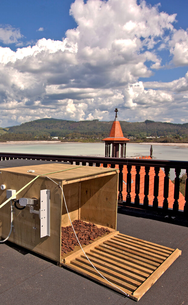 The "hackbox" used for releasing the falcons from Rotorua Museum.